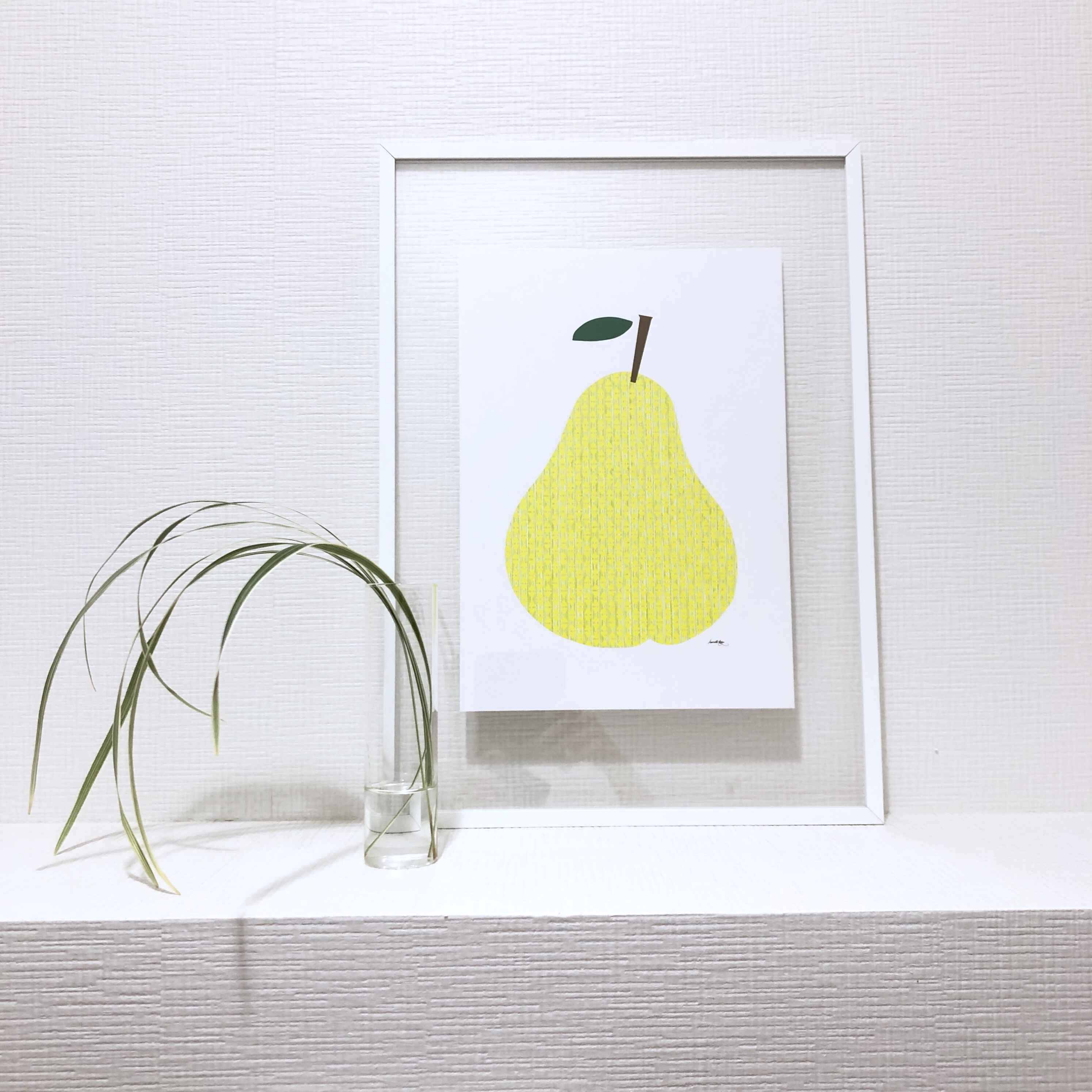 ミスカンサスの葉っぱと、洋梨のポスター。