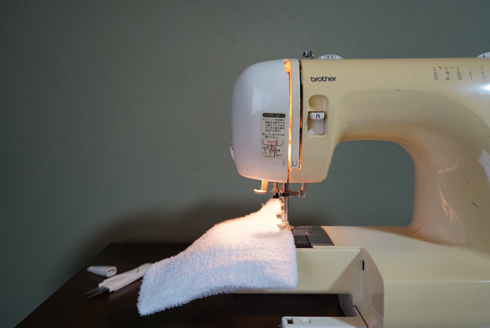 赤ちゃんが寝ている間に、ミシンで縫い縫い。