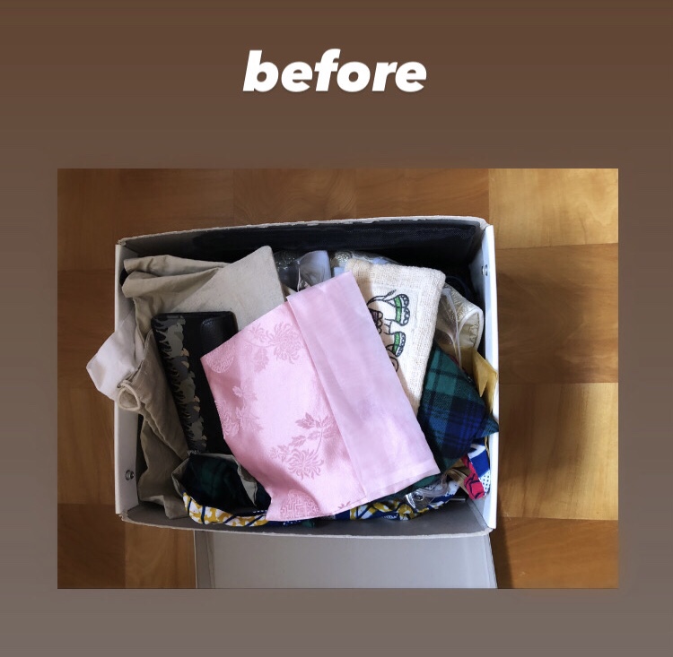 箱の中には、ポーチや巾着袋など似たような用途で使えるものが入っていまして、物を捨てられないあんまんには、この状況が良かったです。