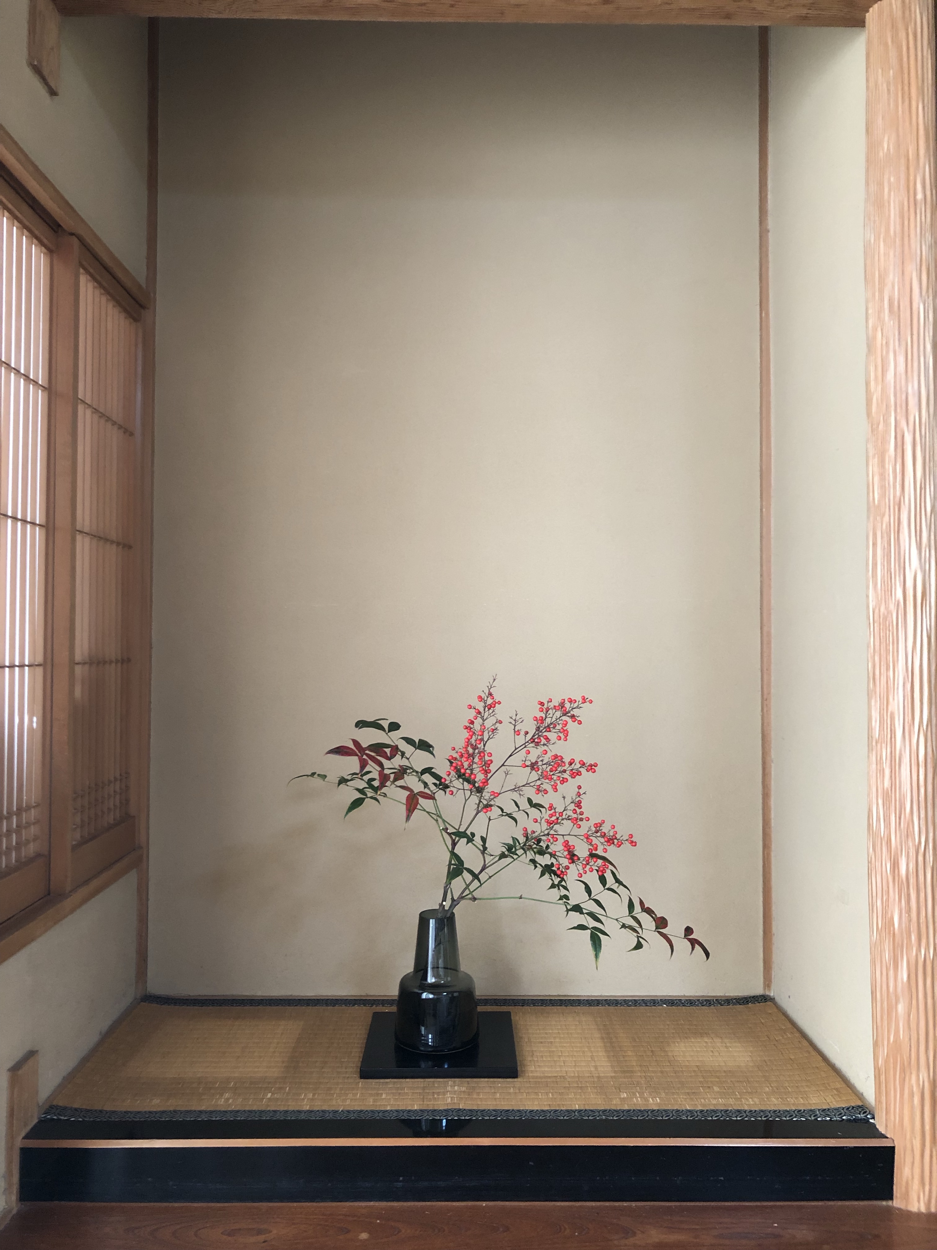 お庭の南天をとってきて飾ったり、季節のお花を飾ったりするようになりました。