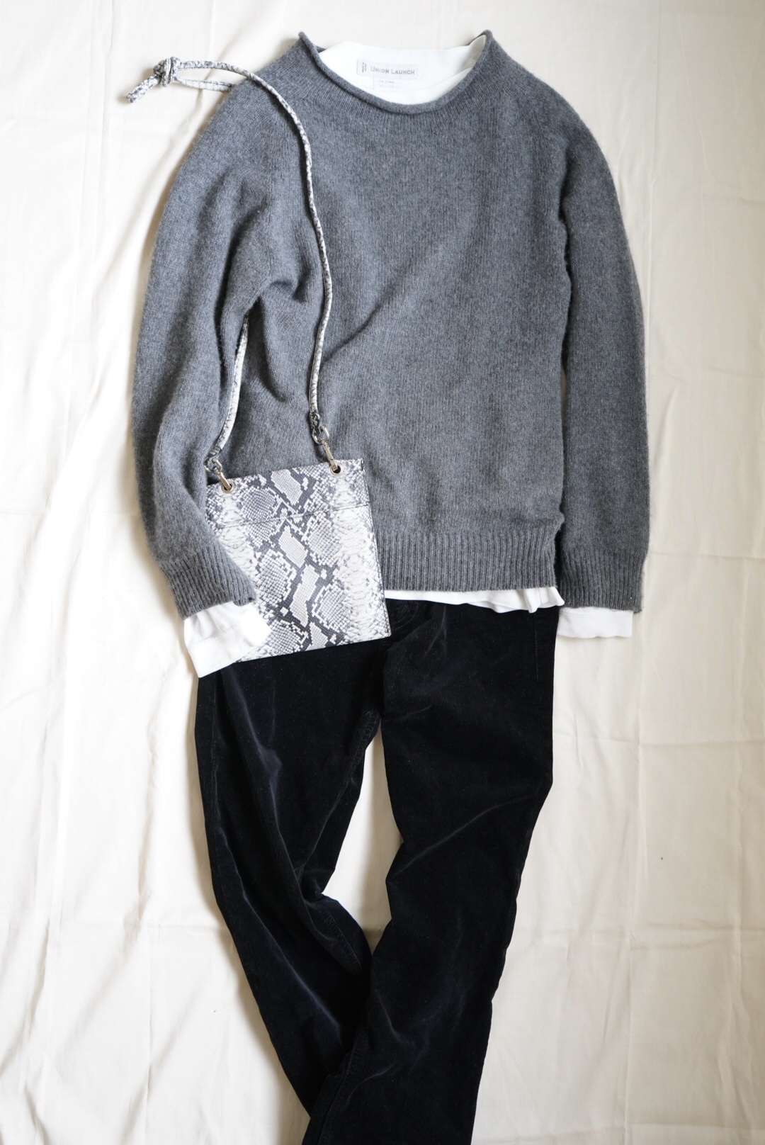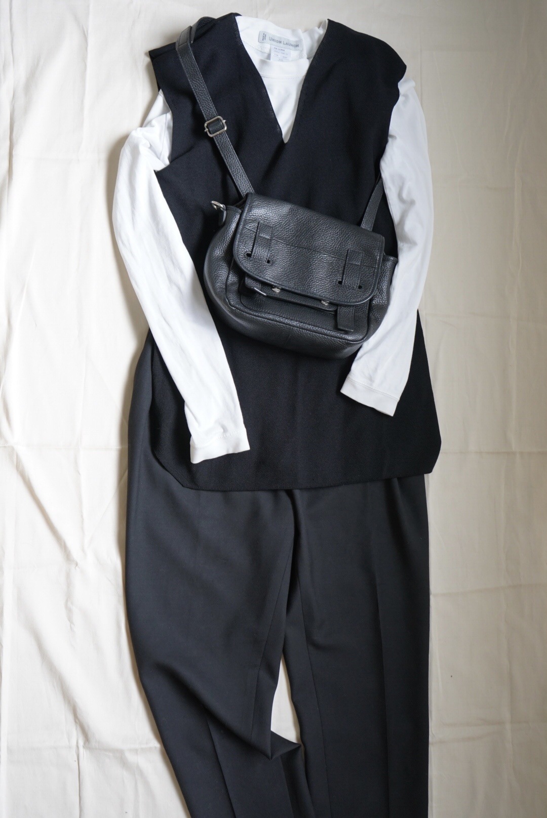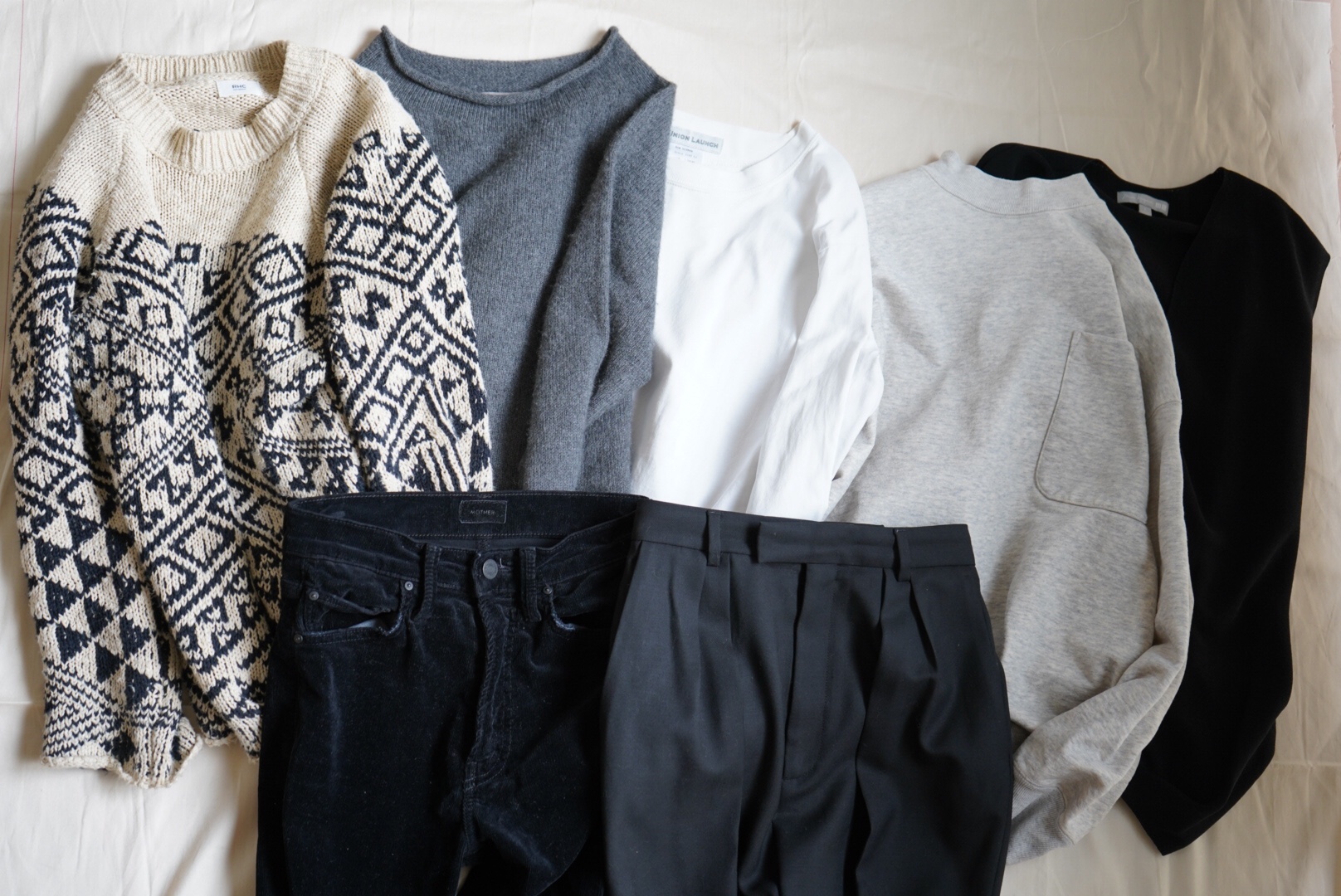発見だったのは、白グレー黒というベーシックな色のトップスに黒パンツの組み合わせで、同じような雰囲気になるかと思いきや、この4パターンをぐるぐる日々着回していても不思議と飽きなかったということです。