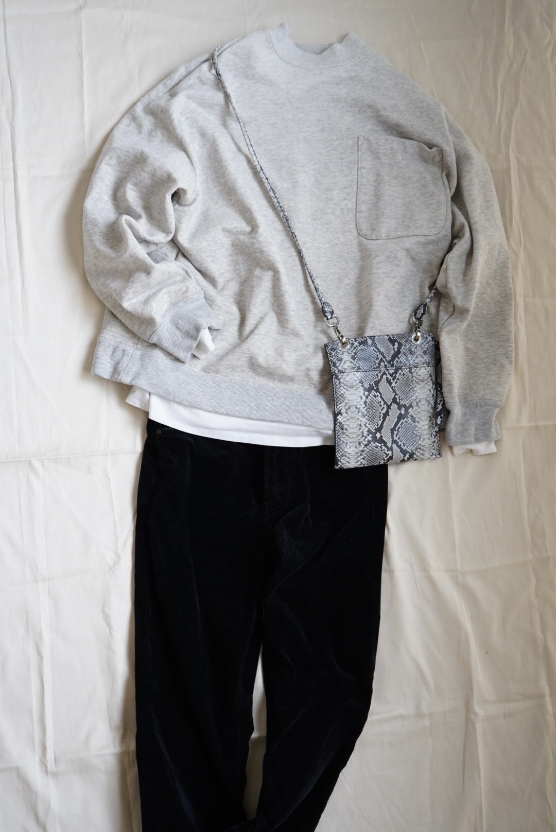 トップスは肉厚のスウェットや綿ニットや薄手のウールニットを掛けました。
