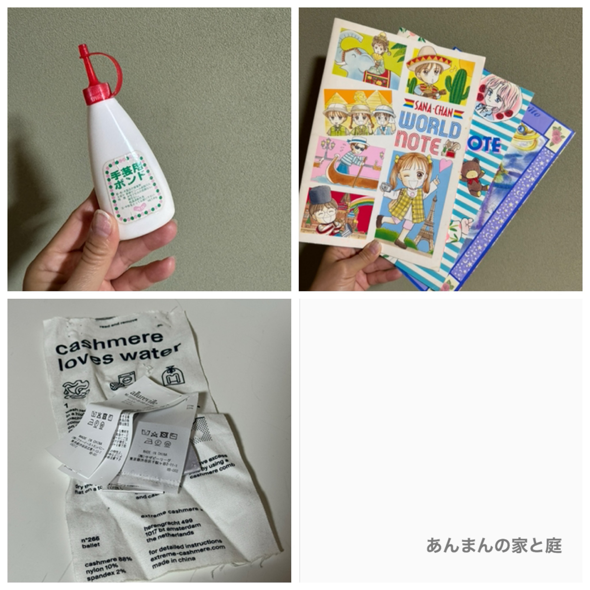 手芸用ボンド、懐かしのノート、外したお洋服のタグ..