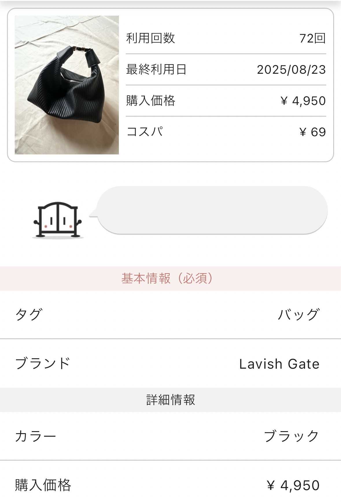 アプリに登録していたバッグのデータを公開しますね☺︎