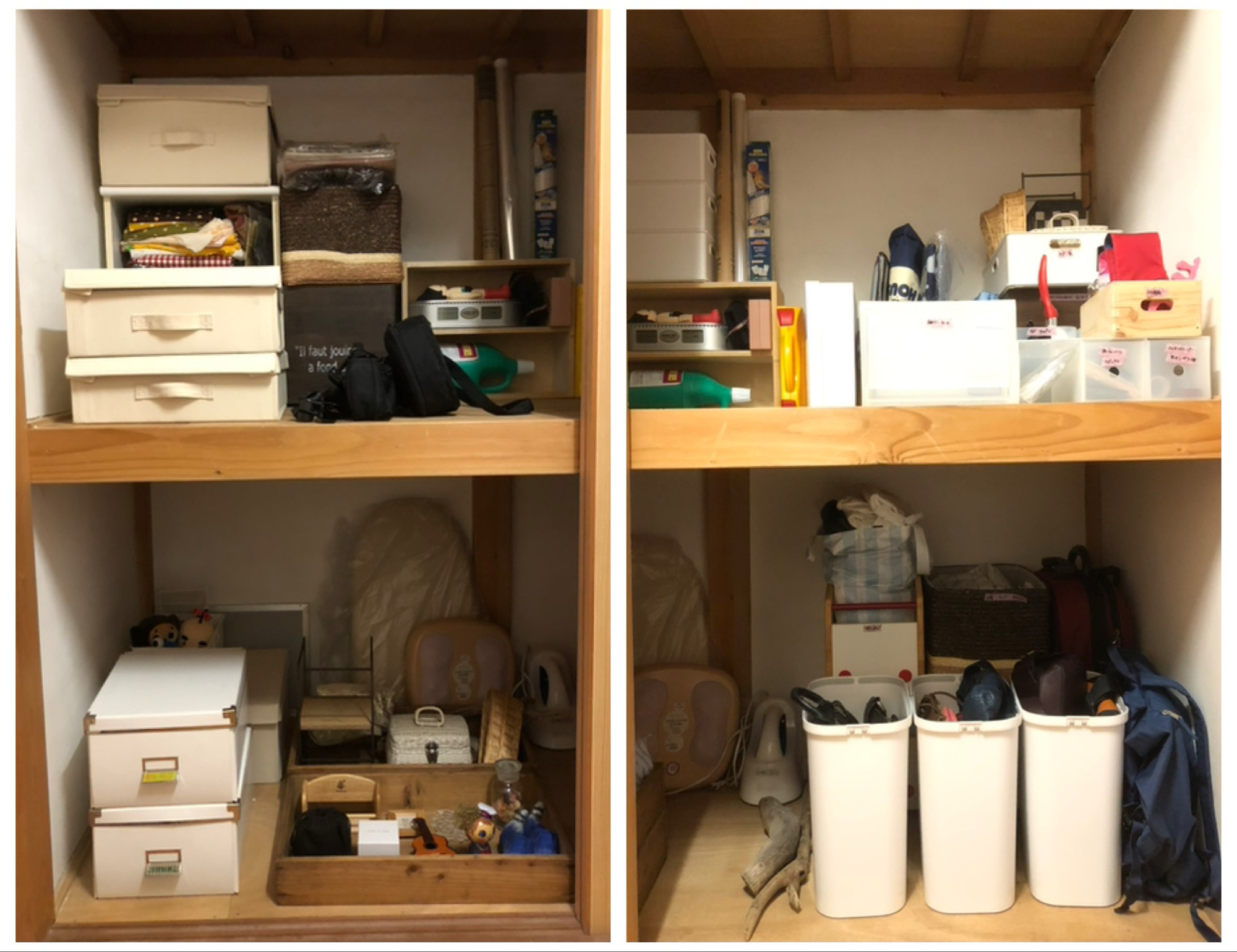 押し入れの左側と右側の写真を1つの画像にまとめました。